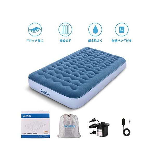 Deeplee エアーマット 限定特価 エアーベッド キャンプ キャンプ用品 電源不要 充電式電動ポンプセット シングルサイズサ