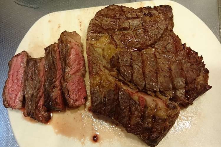 自宅で贅沢しましょ グリルで焼く厚切りステーキ レシピ 作り方 By まるママ あるものレシピ 楽天レシピ