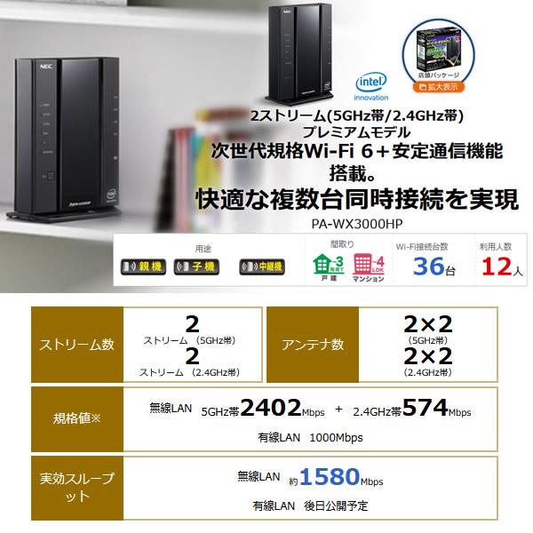 在庫あり Nec Aterm Wx3000hp Wi Fi 6 無線lanルーター 2ストリーム 5ghz帯 2 4ghz帯 Pa Wx3000hp ぎおん 通販 Paypayモール